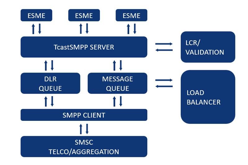 TcastSMPP is developed using state of art scalable SMSC in mind. The architecture is designed to scale up to 1000 SMS per second for outbound traffic. This self-hosted SMPP application can be installed on your premises on your own server, giving you maximum flexibility and data security.